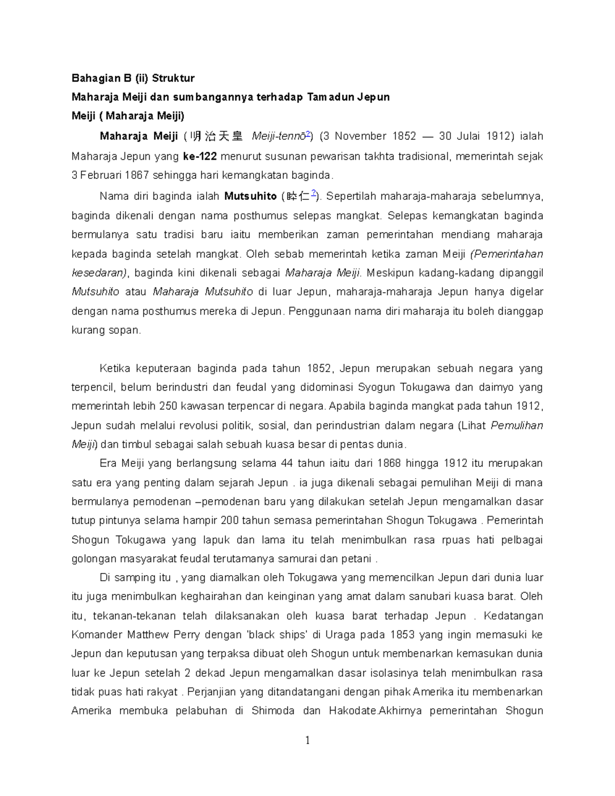 161865362 Maharaja Meiji Dan Sumbangannya Terhadap Tamadun Jepun Bahagian B Ii Struktur Maharaja Studocu